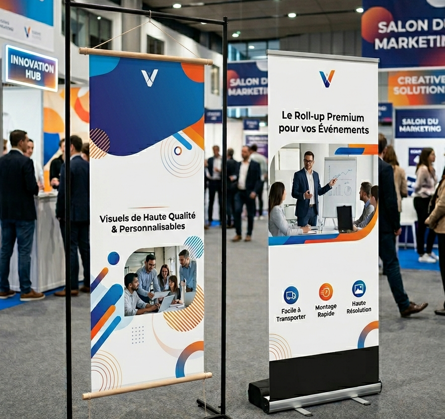 Vous courez de salon en salon ? Vos stands doivent souvent s’adapter à de nouveaux produits ? Et vous n’avez pas du tout envie de devoir, en plus de tous vos allers et retours, courir chez l’imprimeur à chaque changement ?